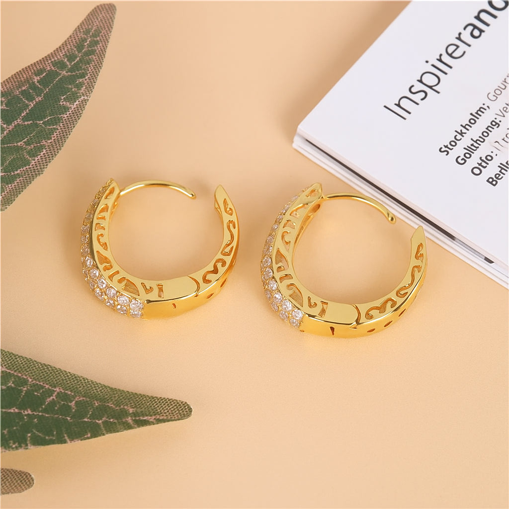 Estes brincos de argola elevam qualquer look com sua presença marcante e elegante. O design vazado, combinado com o brilho intenso das pedras de zircônia cravejadas, cria uma peça única, pensada para mulheres que desejam transmitir confiança e estilo em qualquer ocasião.