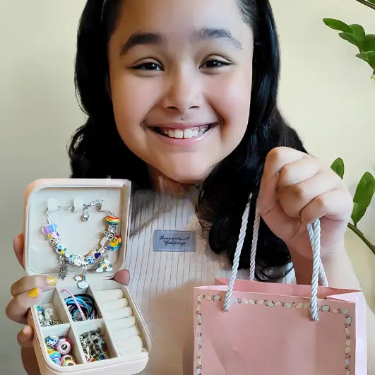 Mais de 60 acessórios exclusivos para criar pulseiras, colares e combinações únicas que vão encantar sua menina.