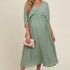 Vestido Maternidade Midi Plissado Decote V – Verde Oliva Claro